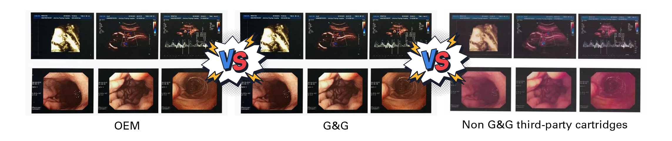 G&G engineers its cartridges to offer consistent and excellent prints with a wide color gamut and vivid colors, including X-rays, color Doppler ultrasound echocardiograph, and prescriptions.